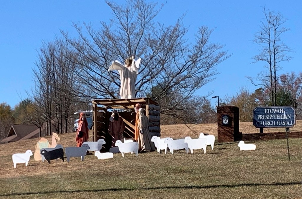 Since we are on a hill at the main intersection in Etowah, our most visible outreach is our annual manger scene complete with animals, shepherds, and the Holy Family. People love this 20-year-old tradition especially the black sheep.